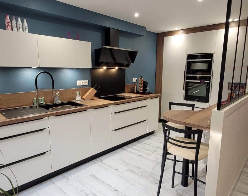 Nous avons fait appel à GH AMENAGEMENT pour notre projet cuisine, qui nous a conseillé judicieusement lors de la conception (plans, choix des matériaux, de l'électroménager). La pose a été effectuée par Laurent et..